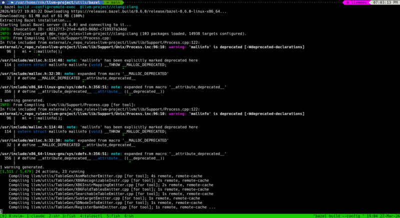 You may be aware that LLVM has a Bazel build system that is officially unsupported but maintained by a subset of the community with some help from automated tools. Bazel speaks the remote execution protocol, so does that allow fast builds? Initially, Bazel had no RE implementation, but eventually several arose, including NativeLink, which I’ll cover later. However, I actually don’t plan to use or promote Bazel.