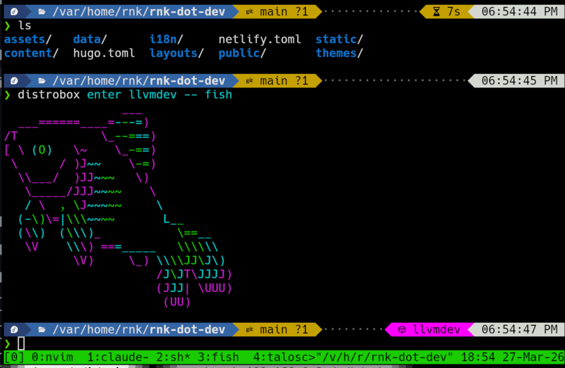 Here’s a quick example of how you can set up an LLVM development container with distrobox, without any distributed build nonsense: