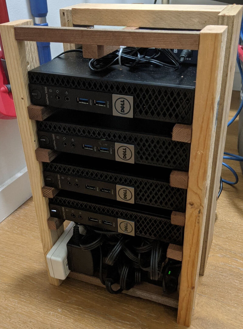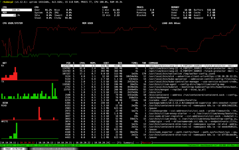 When I left Google, I wanted to take some time to meet LLVM where it is, and to think about what a distributed build system that works for LLVM would look like. I also put a lot of time into spinning up a Kubernetes cluster, pictured right. These aren’t the most powerful machines, and they mostly act as control nodes. I’ve joined some not-pictured nodes to the cluster to give it some more power for this demo. The point here is to prove the concept, so others can copy the idea with beefier hardware. The cluster uses Talos Linux. The cluster deserves its own dedicated post, so we’ll leave it out of scope, even if it is cute.